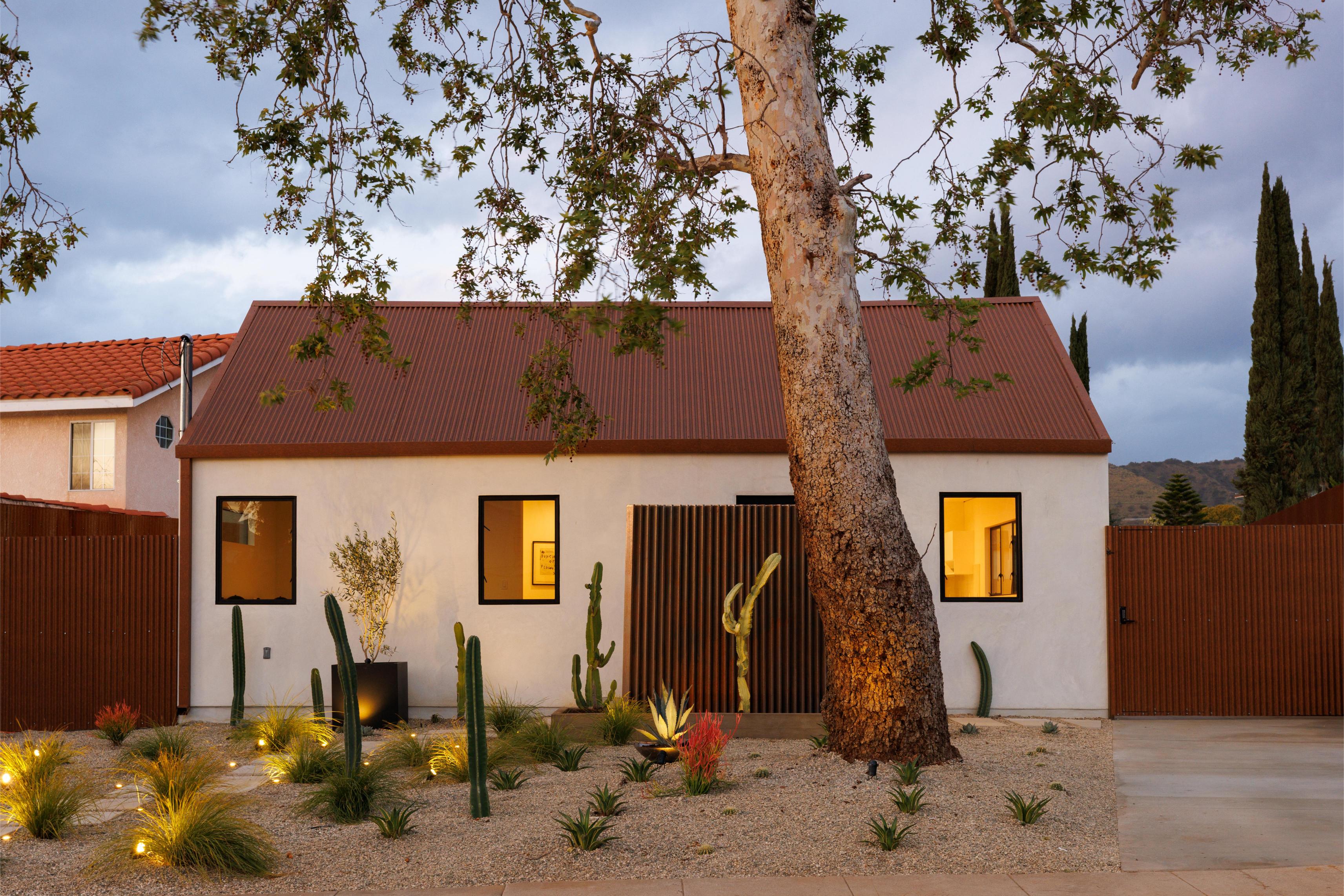 Simplicity at its finest, this completely revitalized three bedroom home with fully permitted ADU by ReBuilt is designed for minimal living with clean lines and indoor outdoor flow. Sitting on an expansive 8,000 sqft lot, a unique rusted metal fence encloses the yard making it the perfect place for hangouts and gatherings. This thoughtful and modern design is accentuated by high ceilings, an open floor plan and large wood deck. Beautiful white oak cabinets with a centerpiece island perfectly blend the modern finishes without overpowering the space. The large primary bedroom with high pitched ceilings and picturesque French doors makes this an incredible sanctuary with an abundance of light and calm. The one bed, one bath detached ADU has its own privacy fence that creates separation from the main home for a guest room, studio, or fabulous rental income. Located in the booming neighborhood of Eagle Rock one has a plethora of local eateries with close proximity to both Eagle Rock Blvd and Colorado Blvd. This fun and exciting home is ready for its new owner!
