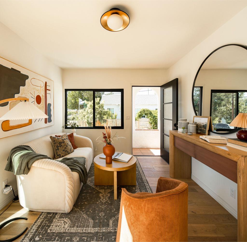 Newly remodeled quaint Spanish bungalow nestled in the heart of Jane's village! This cozy light filled home reimagined by Rebuilt offers a delightful setting for afternoon hangouts or outdoor dinners with friends. Thoughtfully laid out, the kitchen is the heart of the home with ample storage and seating. Two bedrooms are anchored by a beautiful bathroom complete with artisan plaster, custom tile and designer finishes. Multiple doors simplify the indoor outdoor flow making the wrap around yard feel like extra living space! The mountain backdrop immediately makes you feel like you have escaped the city although still so accessible to all Altadena has to offer. Easy off street parking and a two car garage that can double as another bonus space, office, or extra living room! This unique property packs a big punch with fresh landscaping, lots of storage, brand new windows, engineered wood floors, new HVAC, quartz countertops and fun Eastside vibes. An extra bonus is that it qualifies under First Republic Bank's Eagle Community Loan program, reach out directly for more information. This cutie will not disappoint!