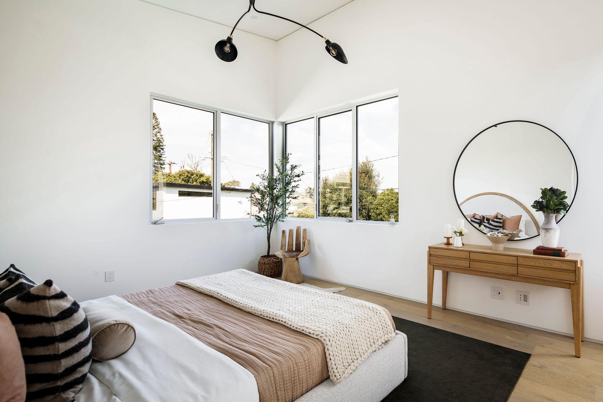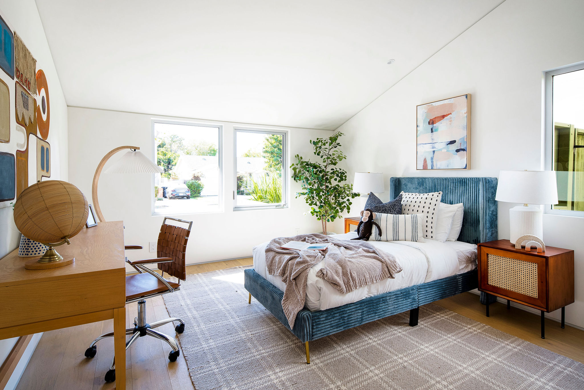 We are pleased to present this exceptional design and collaboration between ReBuilt and Rees studio! In the architects own words "this design is a modern play on the most traditional of residential architectural forms: the gabled roof. By inverting the gable from the lower volume of the house and creating a "butterfly" roof on the upper volume of the house, the structure transitions from conventional to modern as it grows upward. " The charred wood siding, metal accents and concrete elements blend together with white oak detailing throughout. The dramatic beveled tile fireplace anchors the formal living room that sits in the front of the house creating a serene space for acoustic privacy. The formal dining room is perfect for dinner parties and tucked away from the kitchen and family room. The seamless oak cabinetry, built in's and accents showcase the commitment to create a space with striking appeal and function. The expansive family room opens up into the rear yard with large glass Fleetwood metal sliders that disappear into the structure that blur the lines of where the house stops and the yard begins. Stepping out into the backyard you are greeted with an outdoor dining area, pool with deck and flexible ADU/ guest house perfect for visitors or extended stays. The space doubles as a pool house or extra hang out area! A chic powder room and two bedrooms connected with a Jack & Jill style bathroom complete the ground floor. Upstairs you will find an en suite guest bedroom along with a stunning primary featuring soaring ceilings, a massive walk in closet & en-suite bathroom with Japanese style soaking tub and large shower. The Designer finishes and solid wood doors complete the space to stand out as a true owners sanctuary complete with views of Century City and mountains in the distance. This location cannot be beat with close proximity to new google offices, Cheviot Hills, Mar vista and quick access to 10 and 405 freeways.